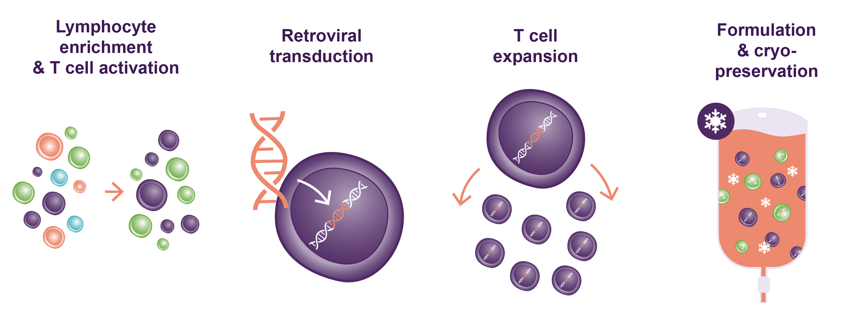 In the next step of the process, the patient’s T cells are activated, genetically engineered, and expanded over 9 days. Key steps in this process are:1,7,8,9